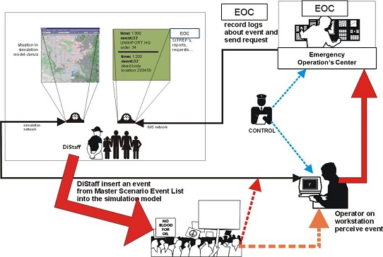 Proper computer simulation of contemporary operation, demands common understanding of: the security environment, characteristics of the area of emergency and standard procedures in responding to perceived threat. The contemporary security is in wider sense multidimensional and consists of: politics, economics, demography, social situation and environmental conditions. Thus, exercise scenario need to cover all above mentioned dimensions and interactions among them.