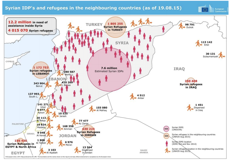 Slika 1: Število beguncev v regiji Bližnjega Vzhoda zaradi Sirijske krize (število do 19.08.2015).